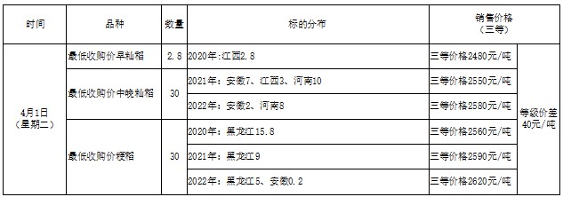 2025年4月1日最低收购价稻谷竞价销售交易公告