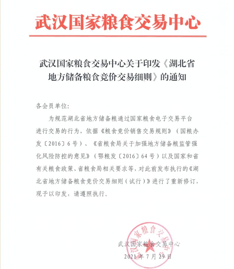 武汉湖北粮网关于印发《湖北省地方储备粮食竞价交易细则》的通知